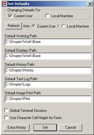 The Set Defaults program will allow you to change the environment variables for ONSPEC.